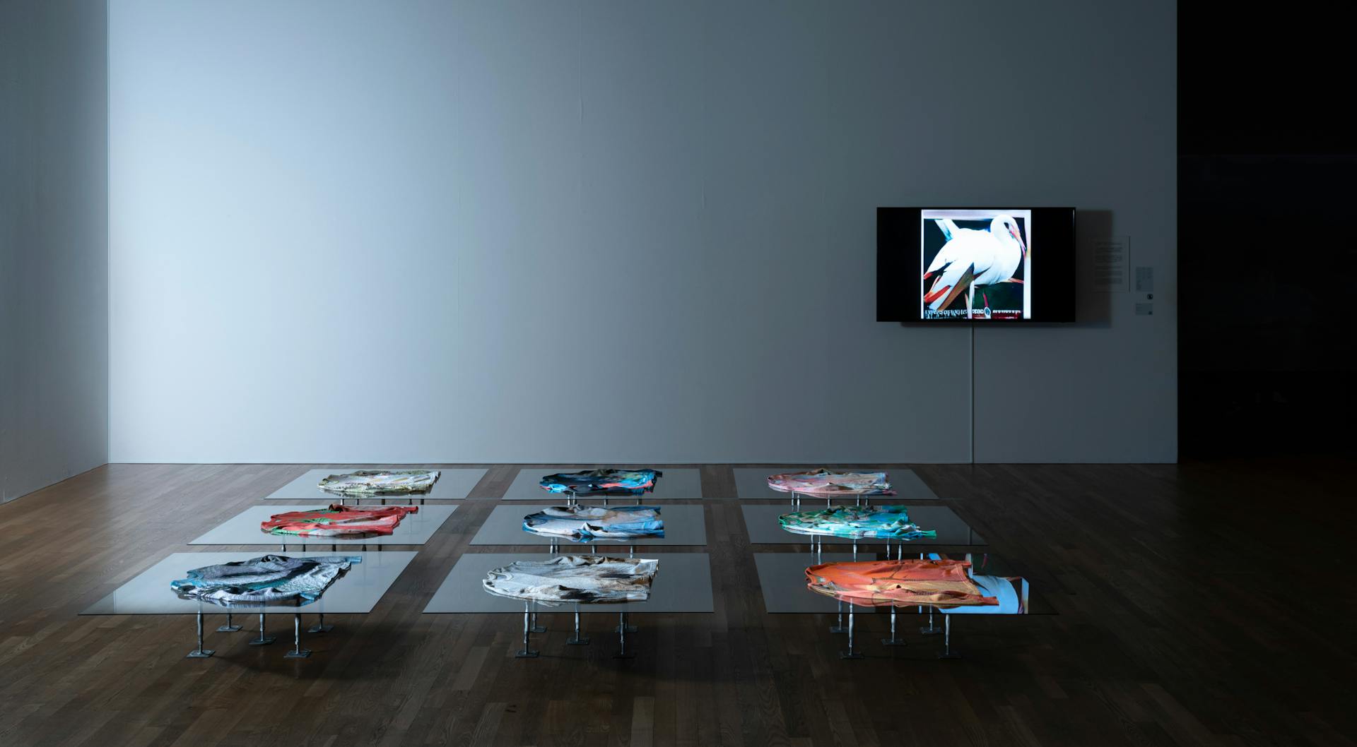 まだ見ぬ存在(モノ)を生み出すのは、人間だけではない。テクノロジーの進化が加速する今日では、機械と、人の手と、自然環境が新たな創造性を導きうるだろう。 ニットウェア「Synthetic Feather」には、200万枚の画像をもとにGAN(機械学習の一種である敵対的生成ネットワーク)から生成された、「架空の鳥」の姿が編みだされている。それは、膨大なイメージが漂う今日の情報環境のなかで生み出された存在であり、機械が夢想する新たな生態系を私たちが思索する手引きを為すかもしれない。 本作品は、「Synthetic Feather」をもとに東京藝術大学美術館にて開催された「新しいエコロジーとアート」展にて披露された。