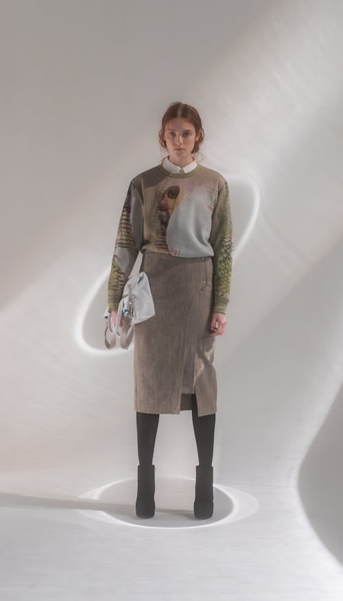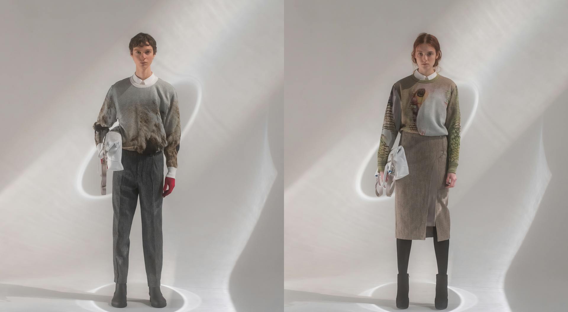 「Synthetic Feather」は、HATRA 2020 Autumn Winter Collection「STUDY SKINS」に合わせて制作されたアルゴリズム・メイドなニットウェアである。 情報環境に存在する無数のイメージの群れから、GAN(敵対的生成ネットワーク)のアルゴリズムが架空の鳥たちを生成。生成画像をテキスタイル職人との協働によってニットマシンによって出力可能なデータへと変換し、今期のテーマ「仮剥製」を象徴する柄をセーターとして保存した。 本作は、AUBIKに引き続き、最適化から逸脱する新たなデジタル表現をひきつづき試行した成果として、SynfluxとHATRAによる共作として発表された。