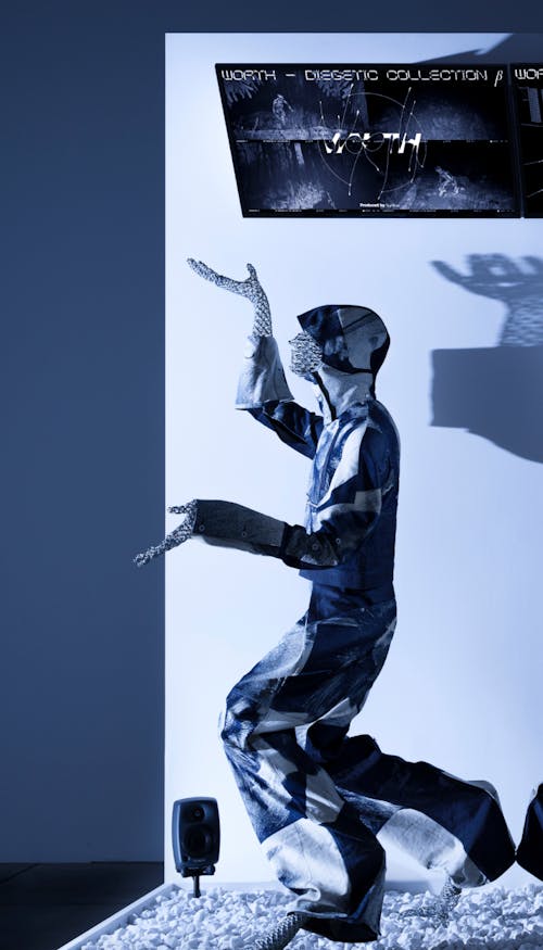 「WORTH- ダイエジェティック・コレクション- 撤退線 β」は、バーチャルファッションと現実世界に存在する服を両立させた作品。創造性を失った都市を離れて“辺境”へと旅立った人々は、いつしか遺伝子編集によってポスト・ホモ=サピエンス「ケモノ」となった──Synfluxと津久井五月によるデザインフィクション「撤退線」では、先進国地方部の人口減少と荒廃の先に新しい人間像を提示することを試みた。 本作品は、21_21 Desighn Sightにて開催された「2121年 Futures In-Sight」展にて初披露された。